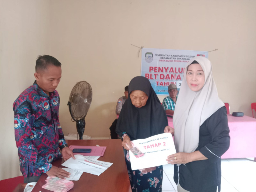 Rabu, 15 Maret 2024 dilaksanakan Penyaluran Bantuan Langsung Tunai Dana Desa (BLT-DD) Tahap 1, 2 dan 3 (Januari s/d Maret) Tahun Anggaran 2024 kepada 29 Keluarga Penerima Manfaat (KPM) Desa Bukit Peninjauan I yang masing-masing KPM menerima BLT-DD sejumlah Rp. 900.000 per KPM untuk tiga tahap sealigus Dalam acara ini turut hadir KASI Pemerintahan Kecamatan Sukaraja, KASI PMD Kecamatan Sukaraja, BABINKAMTIBMAS Desa BPI, Kepala Desa Bukit Peninjauan I, Pendamping Desa BPI, LINMAS Desa BPI dan seluruh penerima BLT DD Tahap 1, 2 dan 3 Tahun Anggaran 2024.